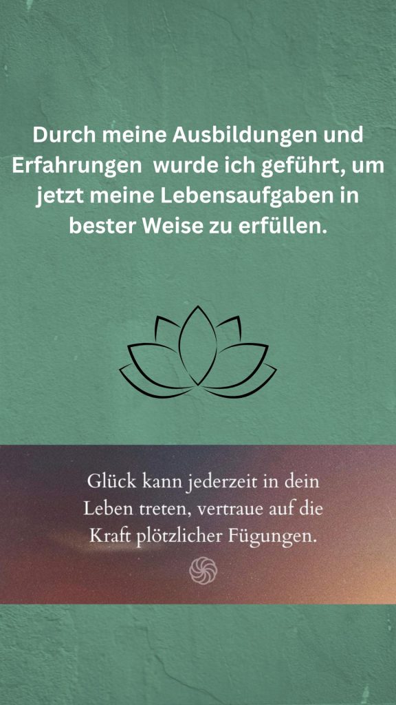 Einfühlsam begleite ich dich beim Umgang mit deinen Emotionen, Wünschen, Veränderung in Familie oder Beruf, Entscheidungsfindung, Krankheiten, beim Leben und Sterben mit einer spirituellen Sichtweise.